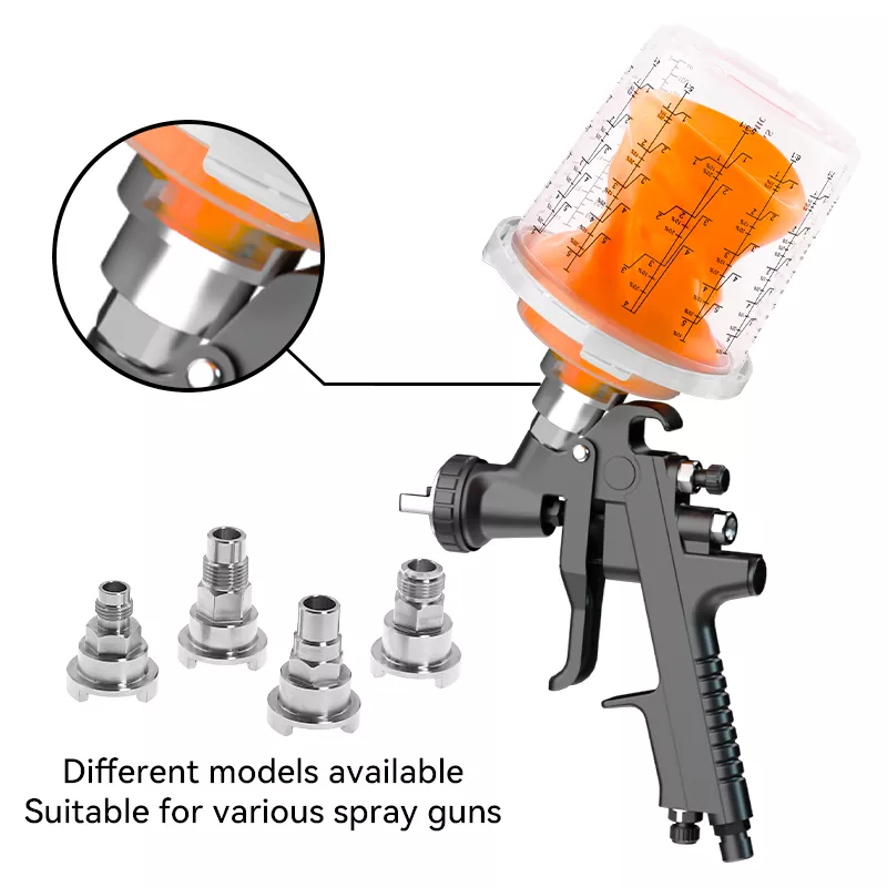 Ang transparent na disenyo ng tasa ay ginagawang madali upang obserbahan ang natitirang pintura. Tinitiyak ng disposable spray tasa na ang spray gun ay maaaring mag -spray ng 360 degree nang walang pagtagas ng pintura, na maaaring mag -pevent ng kontaminasyon sa ibabaw ng kahoy na butil na dulot ng pagtulo ng pintura. Ito ay angkop para sa PU/NC pintura na nag -spray sa mga kahoy na pintuan, cabinets, at solidong kasangkapan sa kahoy.