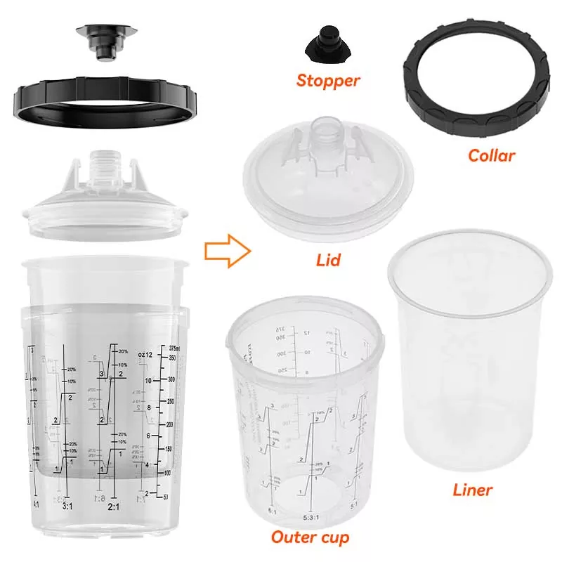 Ang bawat bahagi ngAYSPATAng 400ML spray gun cup ay gawa sa mga bagong materyales na PP at PE plastic. Mayroon kaming mga advanced na kagamitan sa produksyon at isang natatanging proseso ng pag-injection molding, na nagbibigay-daan sa bawat bahagi na magtulungan upang makagawa ng perpektong produkto.