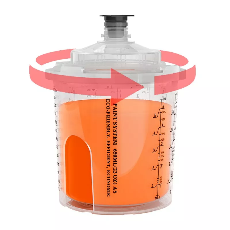 - Ang panloob na liner ng spray cup ay gawa sa malambot, transparent, materyal na grade PE. Ito ay bumababa sa panahon ng pag -spray, na nagpapaliit sa nalalabi ng pintura.