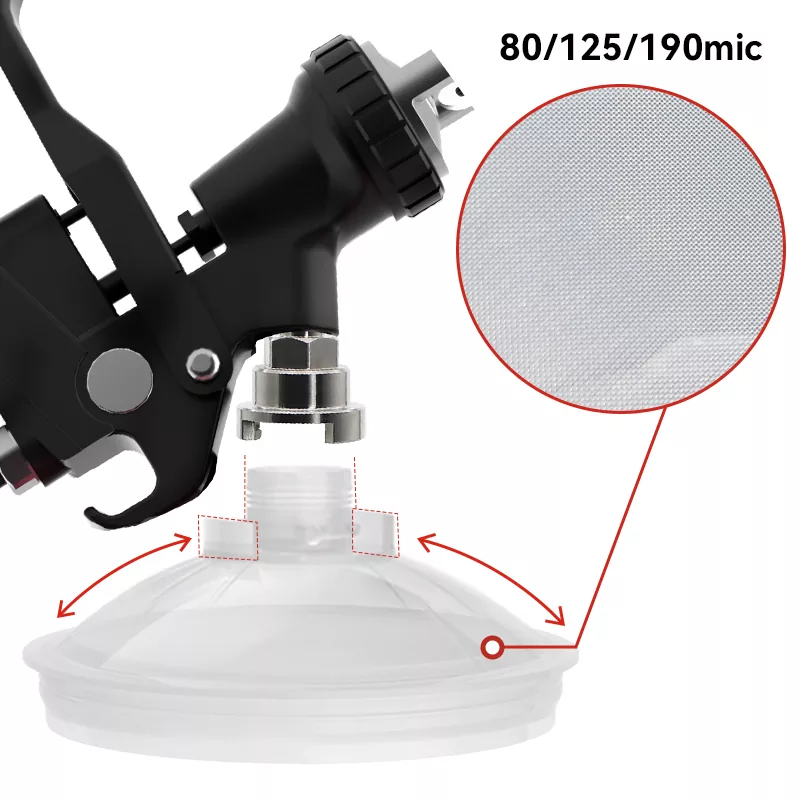 Ang 650ml Speedy Paint System 2.0 ay isang bagong uri ng disposable spray paint cup system. Kasama sa isang karton ang [1 panlabas na tasa +1 kwelyo +50 liner +50 lids +20 stopper], na sumusuporta sa maraming kulay ng pintura sa isang solong aplikasyon. Para sa iba't ibang mga laki ng butil ng pintura, ang mga filter net ay magagamit sa 80, 125, at 190 micrometer, na nagpapahintulot na piliin ang iyong naaangkop na filter. Ang disposable spray paint cup system ay maaari ring gumana bilang isang paghahalo ng pintura at yunit ng imbakan, kaya hindi na kailangang gumamit ng mga funnels ng papel at paghahalo ng mga tasa ngayon, pagkamit ng apat na pag -andar sa isa: pag -filter, paghahalo, pag -spray, at pag -iimbak para sa pintura. Ito ang dahilan kung bakit gustung -gusto ng mga mahilig sa pagpipinta ang produktong ito.