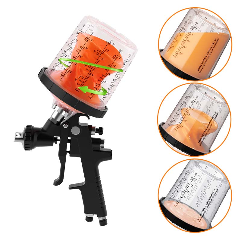 Natatanging teknolohiya ng atomization ng vortex: Ang makabagong disenyo ng panloob na tasa ay ginagawang pantay na pantay na ipinamamahagi ang mga particle ng pintura, pag -iwas sa mga karaniwang phenomena tulad ng pag -curtaining at orange peel na epekto ng tradisyonal na mga baril ng spray. Ito ay lubos na nagpapabuti sa kalidad ng pag -spray at pinatataas ang rate ng paggamit ng pintura sa higit sa 85%.